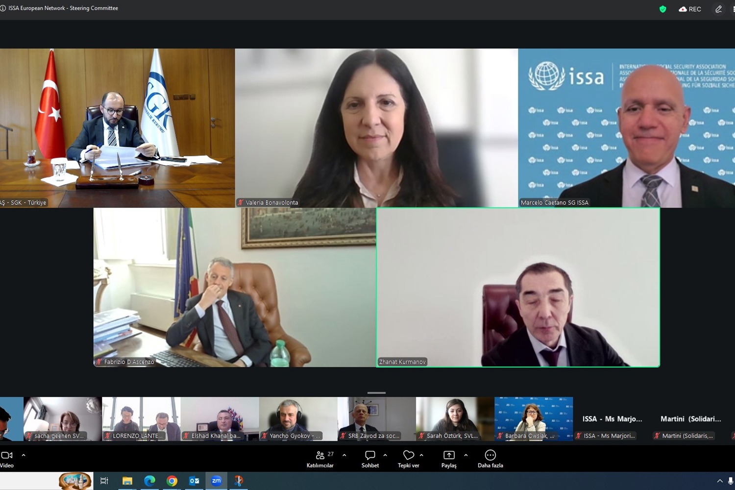 ISSA Genel Sekreteri Marcelo Abi-Ramia Caetano ile ISSA üyesi kurumların Avrupa bölge temsilcilerinin çevrim içi katılım sağladığı toplantıda, 2026-2028 döneminde Avrupa Ağı Sekretaryası görevini yürütme sorumluluğu da SGK’ye devredildi.